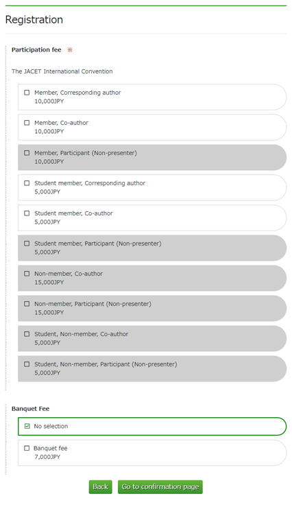 4 懇親会費を選択します