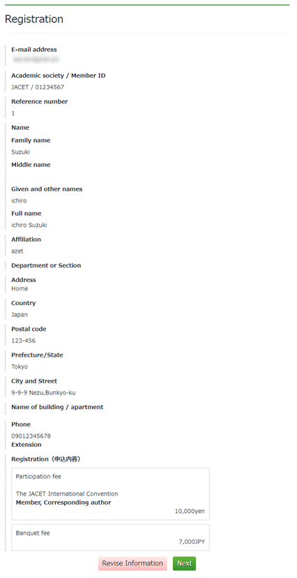 確認ページで申込内容を確認してください