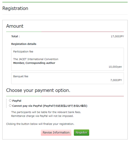 (参加の申し込みだけされている場合、懇親会を追加で申し込めます)
