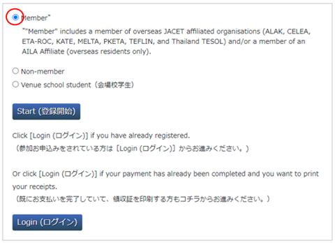 1 会員|非会員|会場校学生 を選択します