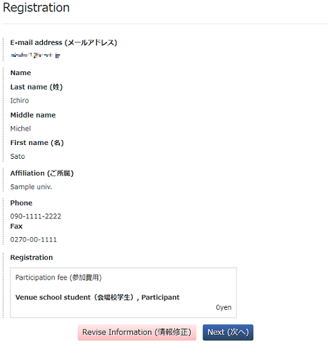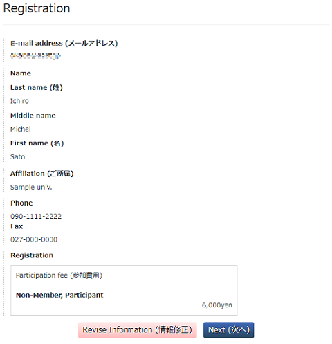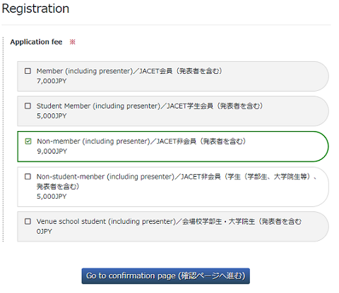 5 参加費用(一般|学生|会場校学生)を選択します